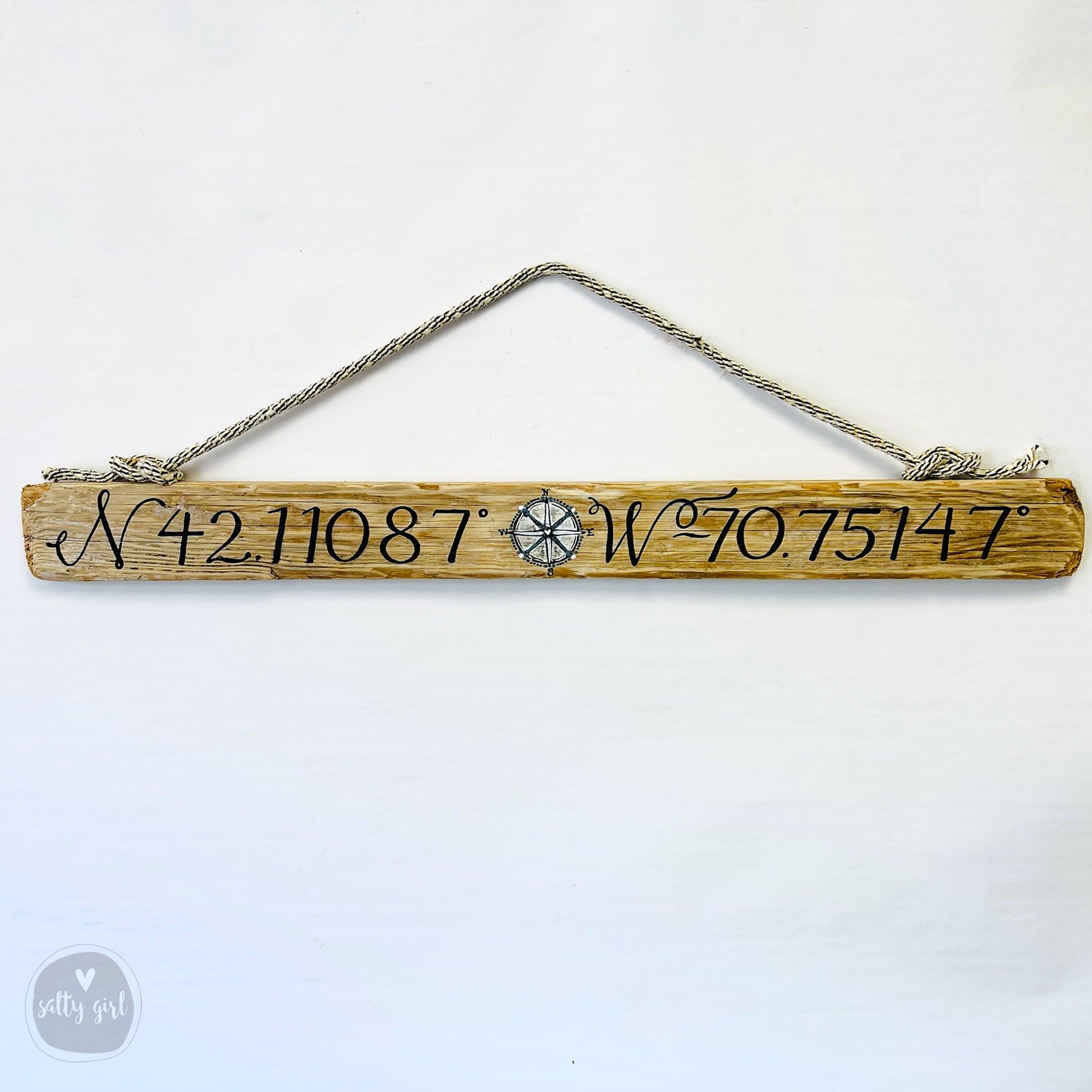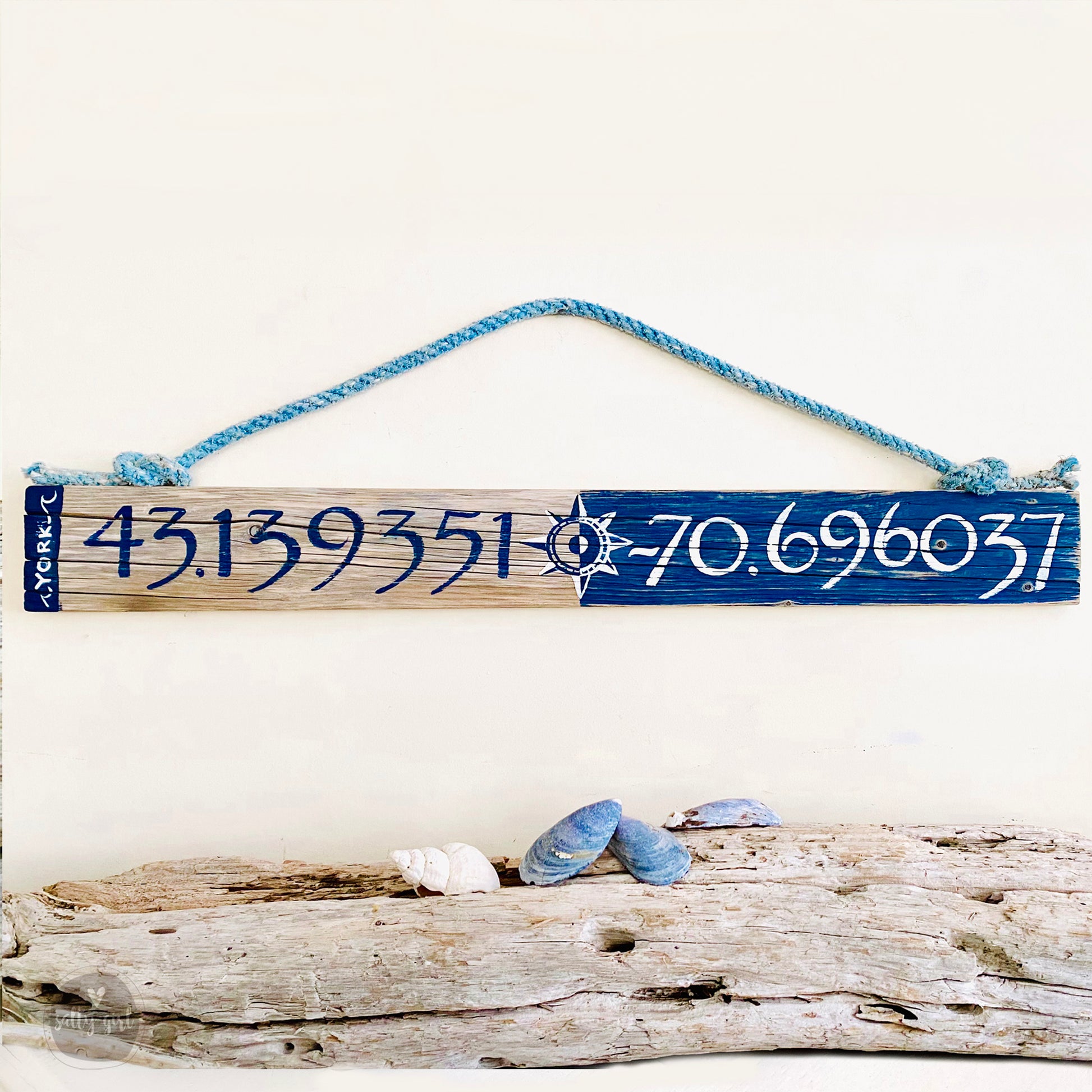 Give someone special a personal touch of Downeast coastal charm with a custom coordinates sign! Painted in a nautical style makes this a truly unique wedding or housewarming gift.