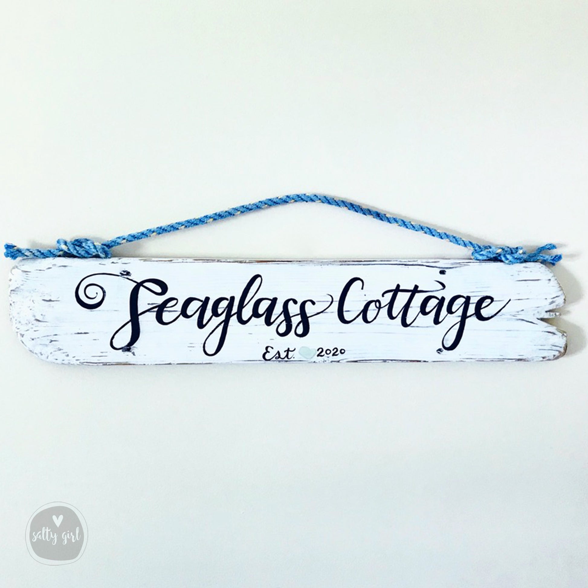Custom Outdoor Driftwood Sign - Personalized Wooden House Sign with Rope Hanger - Summer Cottage Sign