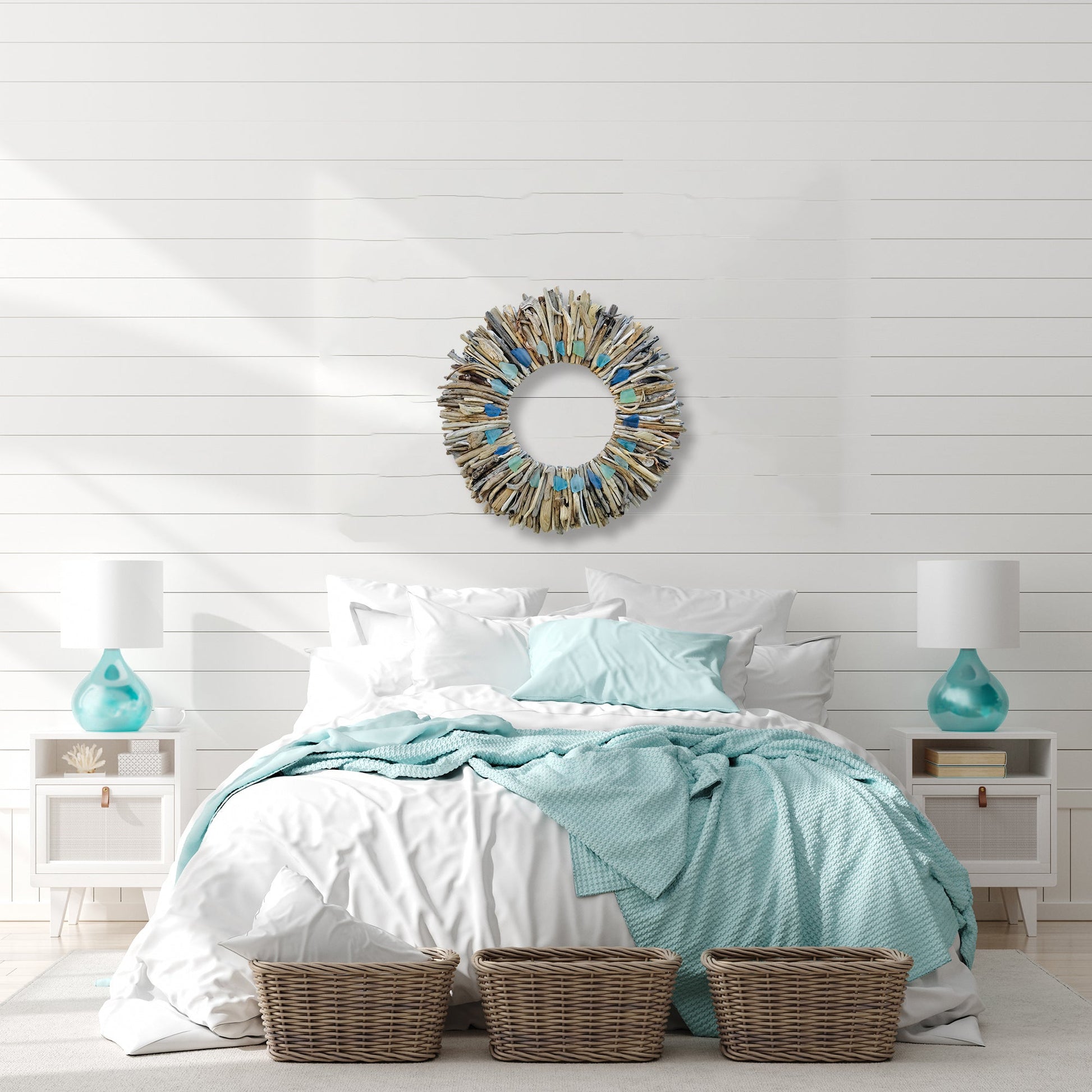 Driftwood Wreath with Aqua Turquoise & Light Blue Sea Glass Accents 12" - 16" - 20”