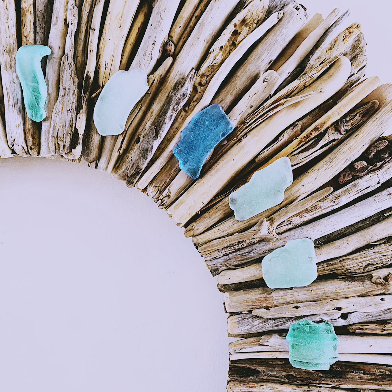 Natural tones of Maine driftwood lay the foundation for the beautiful sea glass accents on this ocean-inspired driftwood wreath. Choice of a wire loop hanger or for a real nautical feel, a retired fishing rope hanger. Perfect for a housewarming or wedding gift, this beauty is sure to bring a touch of the coast to any home!